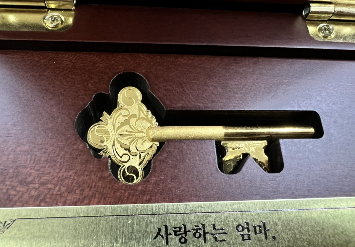 그리고 자세히 보시면 열쇠를 빼면 골드색상으로 열쇠 모양이 되어있는데, 실제 황금 열쇠를 보관하고 진열 해두는 경우에 잃어버리지 말라고 저렇게 그러져 있다고 한다!